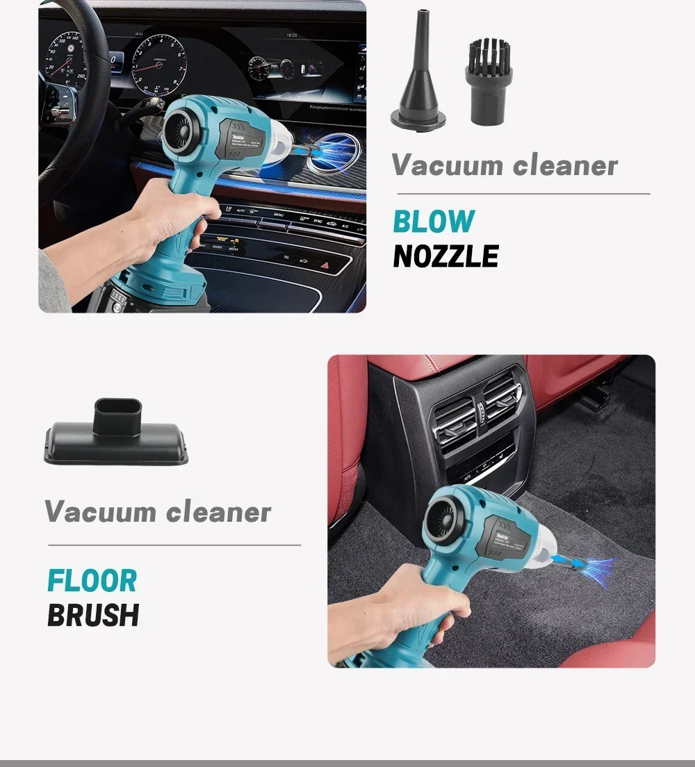 Cenários aplicáveis: Limpeza de carros, limpeza de espaços de armazenamento, limpeza de porta-malas, limpeza de pequenos itens como teclados (conforme mostrado nas imagens dos cenários de uso)