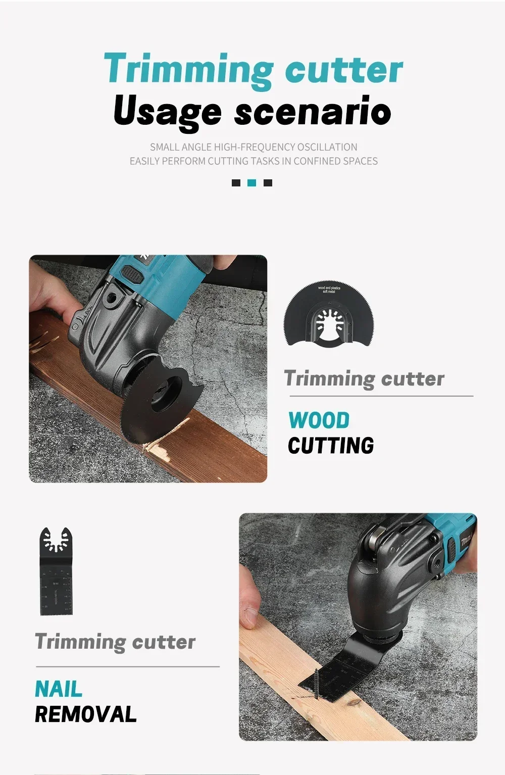 Instalação e substituição: Mandril de instalação rápida, troca rápida de lâmina de três etapas, etapas: gire a chave para frente 180°, Instale a lâmina de serra e alinhe a interface, Redefina a chave