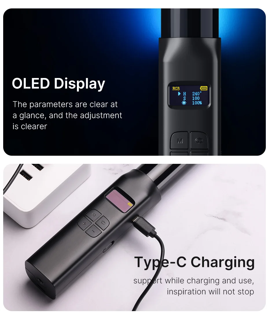 Design em forma de haste, maior faixa de saída de luz, adequado para mais cenas