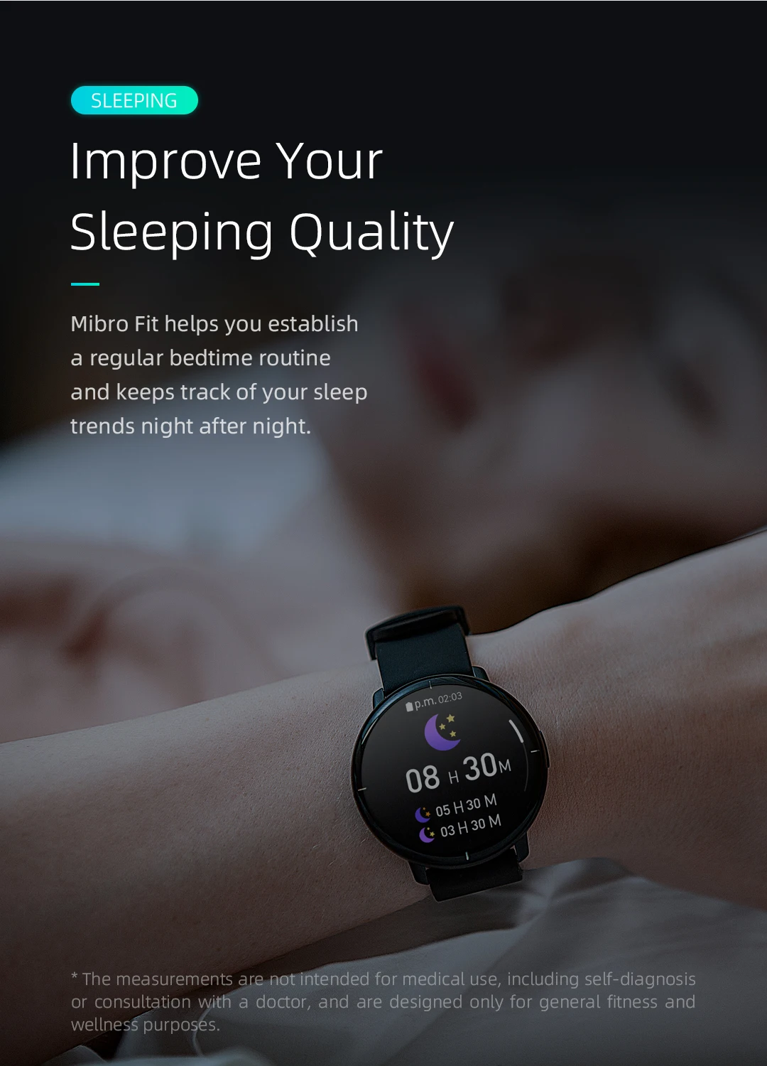 O Mibro Fit ajuda você a estabelecer uma rotina regular antes de dormir e acompanha suas tendências de sono noite após noite.