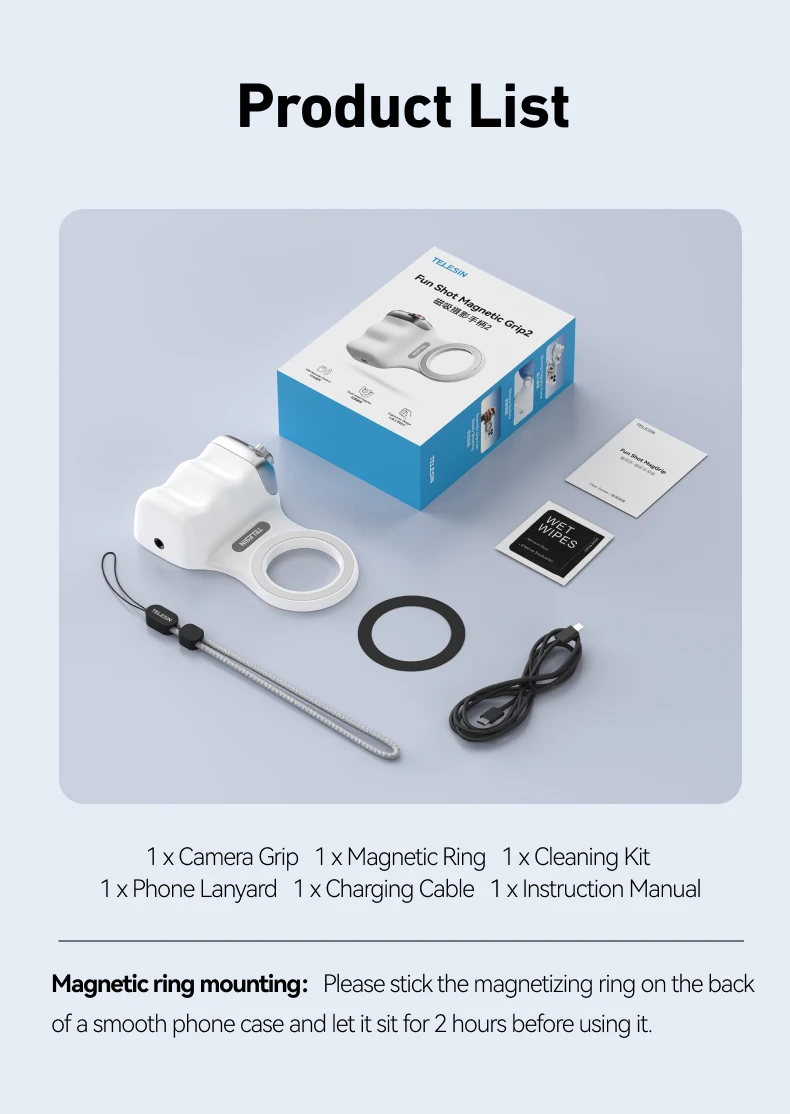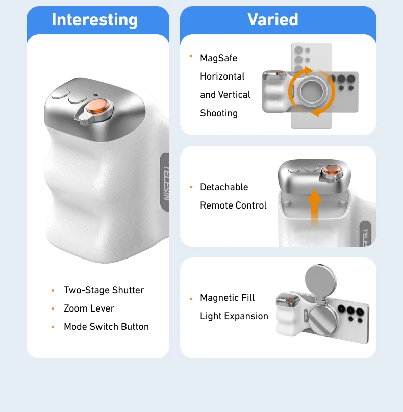 Aperto magnético da mão da câmera do telefone TELESIN| Alça de controle remoto Bluetooth| para iPhone, Samsung, Huawei, Xiaomi